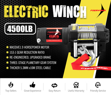 Very low stock (7 units)$20995Unit price /UnavailableFIERYRED Electric Winch 4500LBS/2045kg 12V Synthetic Rope Wireless Remotes ATV UTV