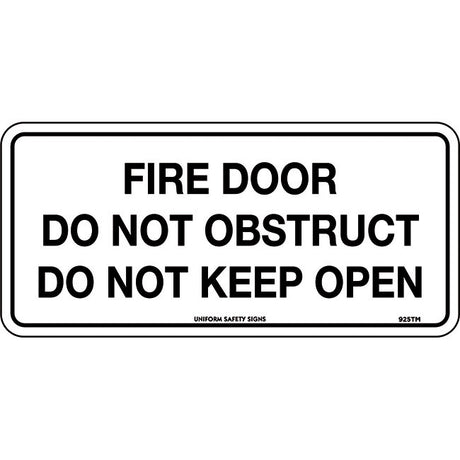 Fire Door Do Not Obstruct Do Not Keep Open 300x140mm Self Adhesive