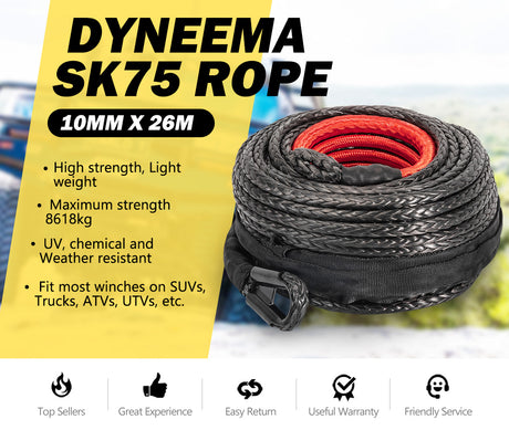 $6995Unit price /UnavailableFIERYRED Winch Rope 10MM x 26M Synthetic Dyneema SK75 for WARN Winch Black 4WD