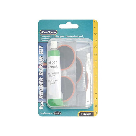 Protyre Tyre Repair Kit 9Pc With 5 Patches,Steel Buffer, 2 x Valve Tubing Glue