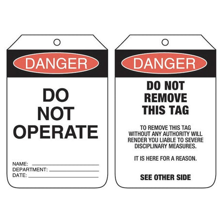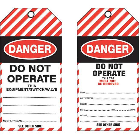 $5416Unit price /UnavailableDanger Do Not Operate This Equipment/Switch/Valve Lockout Tag Cardboard Pack of 25