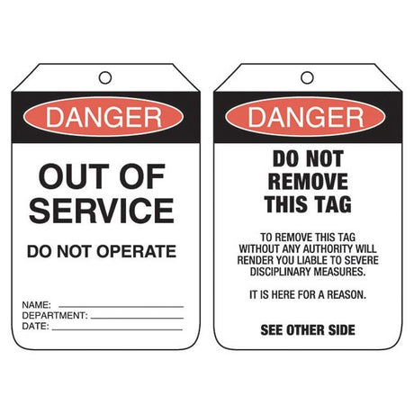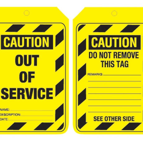 Caution Out Of Service Heavy Duty PVC Lockout Tags Pack of 25