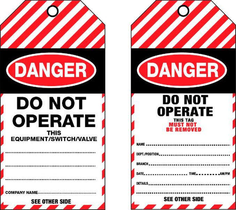 - Danger Do Not Operate As TDT100TP Tear Proof Tags 100x Pack $8360Unit price /Unavailable