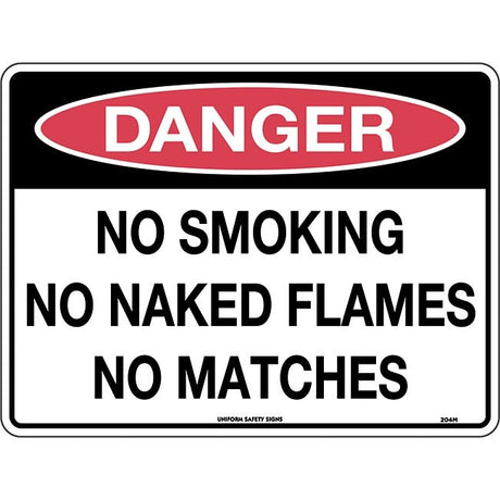 - Danger No Smoking No Naked Flames No Matches Safety Sign 300x225mm Poly $4918Unit price /Unavailable