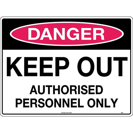 - Danger Keep Out Authorised Personnel Only Safety Sign 600x450mm Poly $5916Unit price /Unavailable