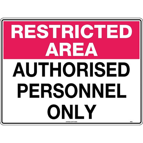 - Restricted Area Authorised Personnel Only Safety Sign 450x300mm Metal $5589Unit price /Unavailable