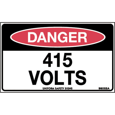 - Danger 415 Volts Self Adhesive 90x55mm Pack of 10 $5652Unit price /Unavailable
