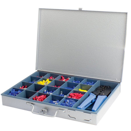 Insulated Terminal Kit Assortment with Ratchet Crimper Steel Heavy Duty Case 1101 Pieces