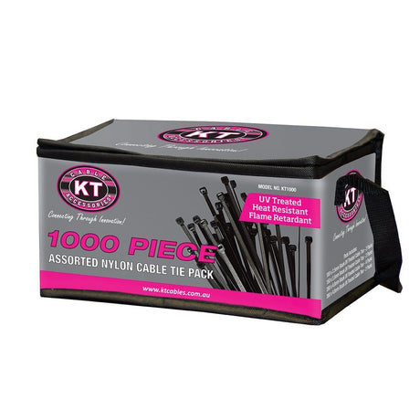 1000 Piece Cable Tie Pack Black UV Treated Nylon Mix Sizes