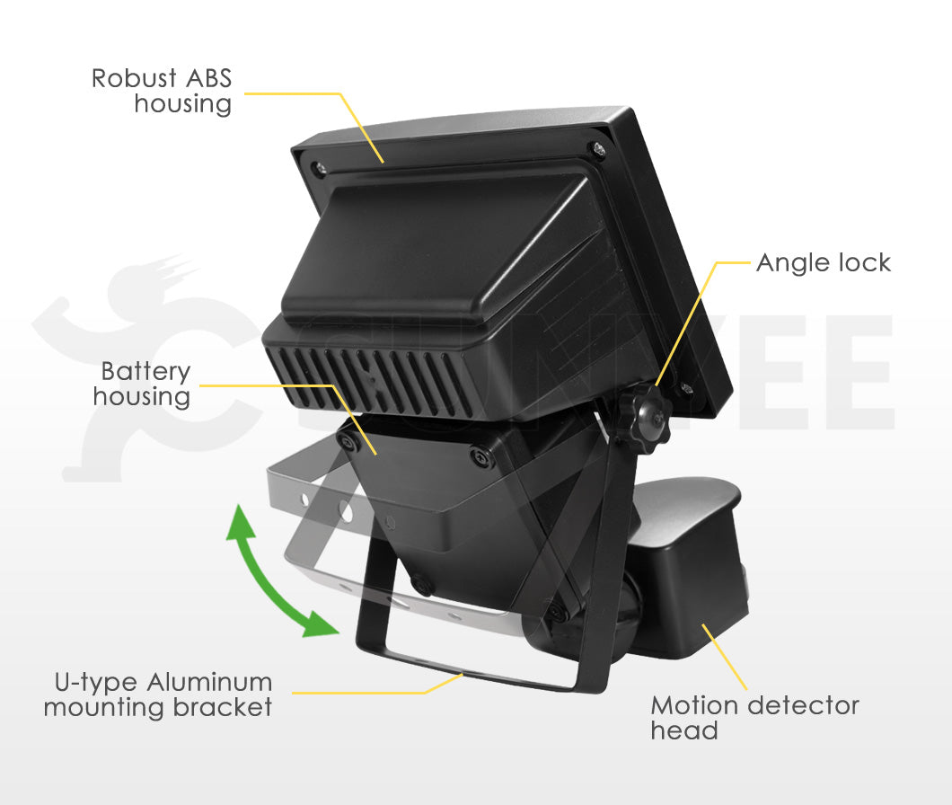 Sturdy Construction: Made of robust ABS housing and equipped with U-shape aluminum mounting bracket that are both scratch and impact resistant.