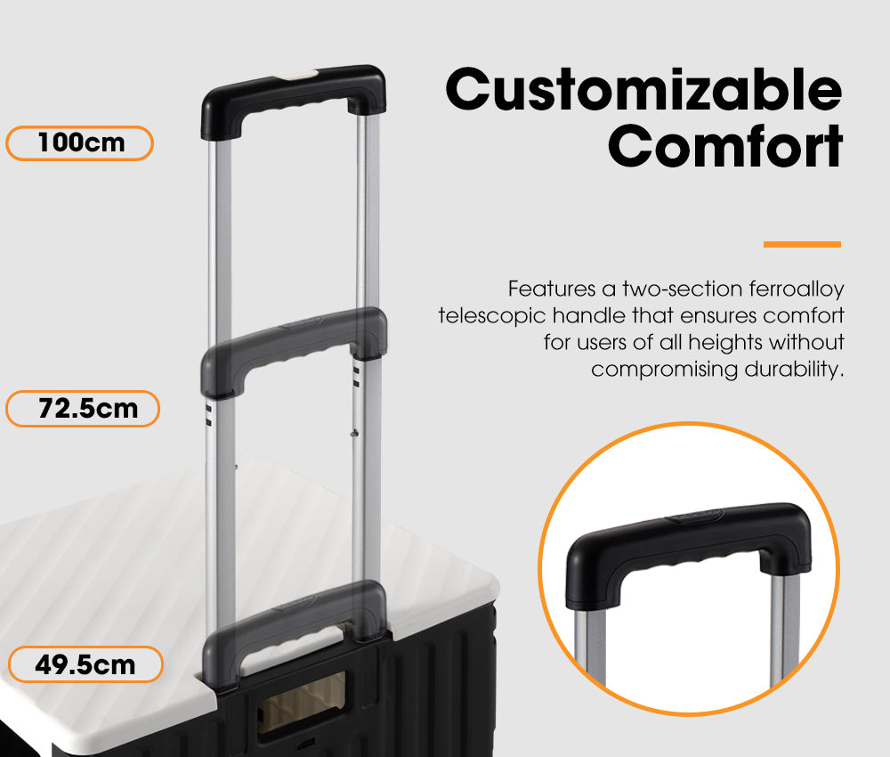Instant Setup: Our cart boasts a collapsible design for instant setup. Once you're finished it neatly packs down to just 50x44x9.5cm fitting snugly into your car's boot.