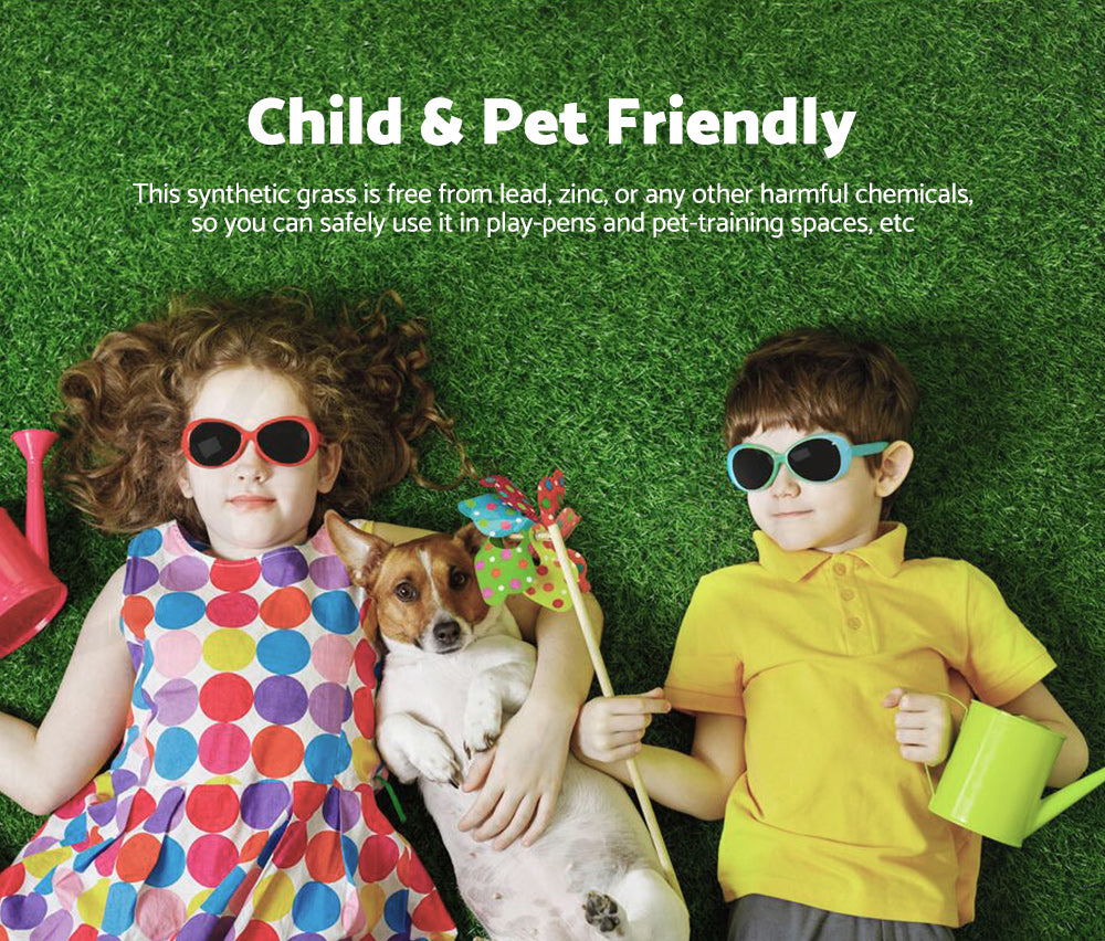 Child & Pet Friendly: This CE approved synthetic grass is also certified by SGS laboratories on fire/UV resistance to ensure maximum safety during use.