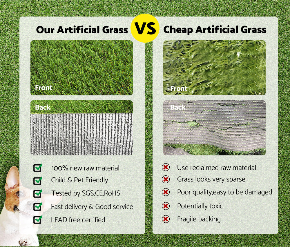 Child & Pet Friendly: This CE approved synthetic grass is also certified by SGS on fire/UV resistance and toxicological profile (lead) to ensure maximum safety.