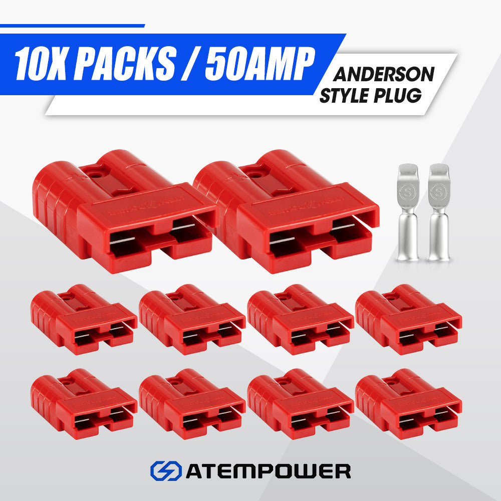Have you been searching for a simple yet durable solution for power connection (e.g. batteries backup power automotive/caravan power telecommunications and data transmission) please look no further the Anderson plugs made by ATEM POWER are designed to handle a high continuous load. Made of ultra tough polycarbonate housing this Anderson plug is built to beat any harsh conditions including impact shock vibration and scratch so you can go anywhere with reliable power connection. In addition these plugs are all weather and element proof which can effectively prevent water sand and dust from seeping in. And all contacts are silver plated for lower resistance and copper terminals capable of handling high currents with minimal electric loss. As a preferred way for DC power distribution and battery connections the genderless design of Anderson plug allows you to customize highly efficient connections for any DC and solar setup. Be sure not to miss it.