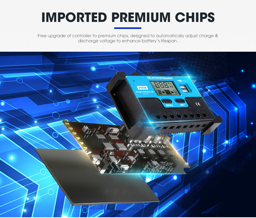 3-Stage Charging: A PWM 3-stage algorithm bulk absorption and 100% float charge is designed to enhance efficiency and ensure battery lifespan.