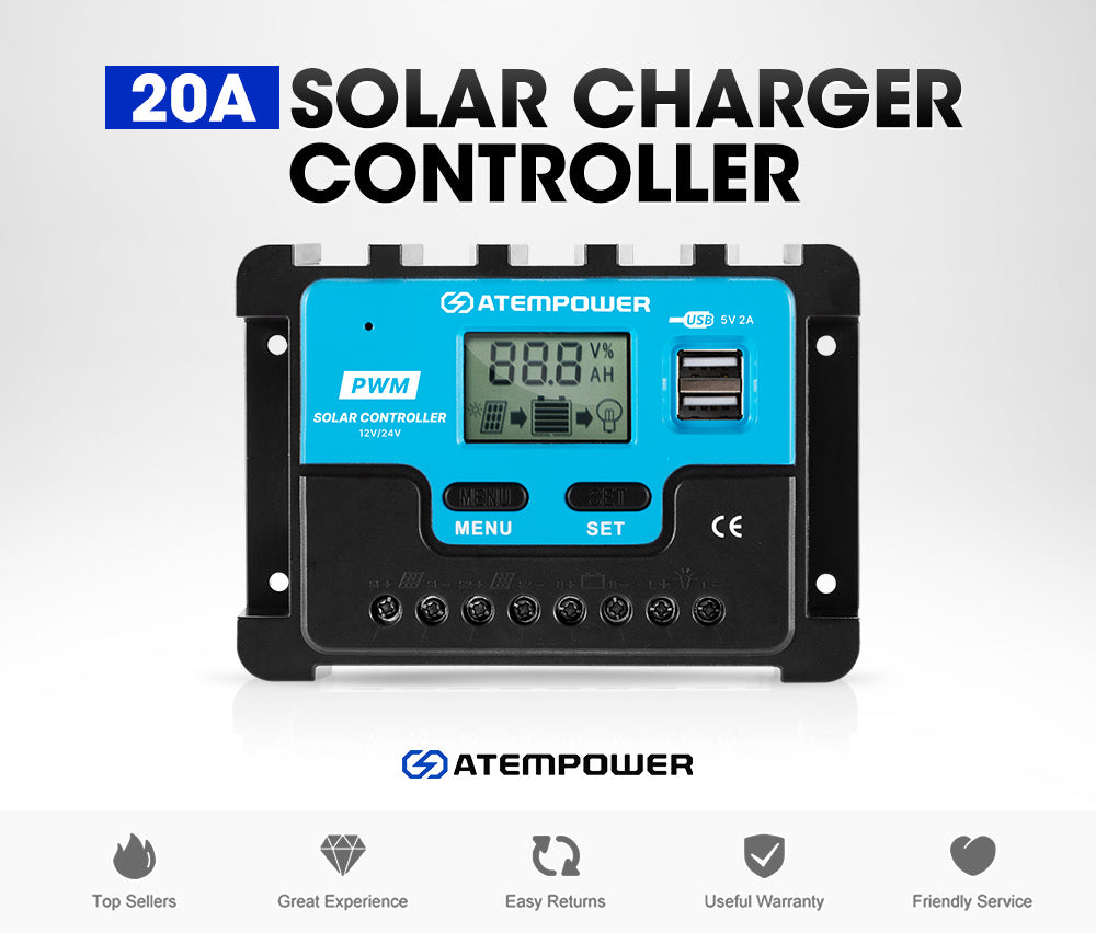 If you are looking for a solar controller to charge your battery and keep unnecessary damages at bay please look no further this PWM solar controller must be the one you are looking for. This solar controller is ideal for off-grid applications on 12V-24V systems and it uses a 3-stage algorithm---bulk absorption and float---to increase the lifespan and performance of batteries accordingly to battery type lead acid battery(flooded GEL and AGM) and lithium battery ( Li(LiCoMn)O2 and LiFePO4). And this is further enhanced by the programmable voltage it integrates. In addition this solar controller can be connected to 2 solar panels which can increase charging efficiency. It also offers a built-in LCD display through which you can have a real-time view of the system status. And an array of built-in protections-low/over voltage short circuit overcharge/ overdischarge overcurrent overload and reverse polarity protection-offer an extra layer of protection.