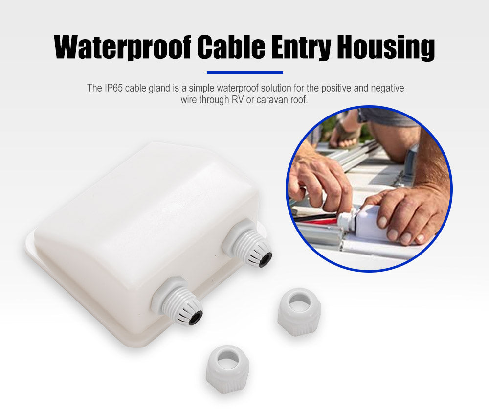 Attaching solar panels to the roof of your caravan may sound like a straight forward procedure if you don’t mind drilling holes on the roof. But if you prefer not to drill holes these ATEM POWER solar panel brackets provide a drill-free yet secure solution. Made of non-corrosive UV stable and 100% recyclable ABS these drill-free solar panel mounting brackets can be used with aluminium frame panels of different sizes without any modification. You stick or screw your panel onto these solar panel mounting brackets and then simply stick the solar panel mounting brackets with the panel onto your RV caravan boat or rooftop. The solar panel mounting brackets will keep the solar panel with adequate space underneath for cooling in high temperatures. And the IP65 cable entry housing in the solar panel mounting kit is a simple waterproof solution to avoid unsightly and potentially leaky cable entries.