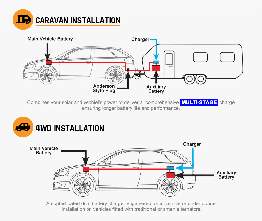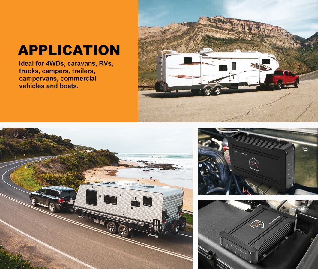 Superior Versatility: This battery to battery charger is ideal for 4WDs caravans RVs trucks campers trailers campervans commercial vehicles and boats.