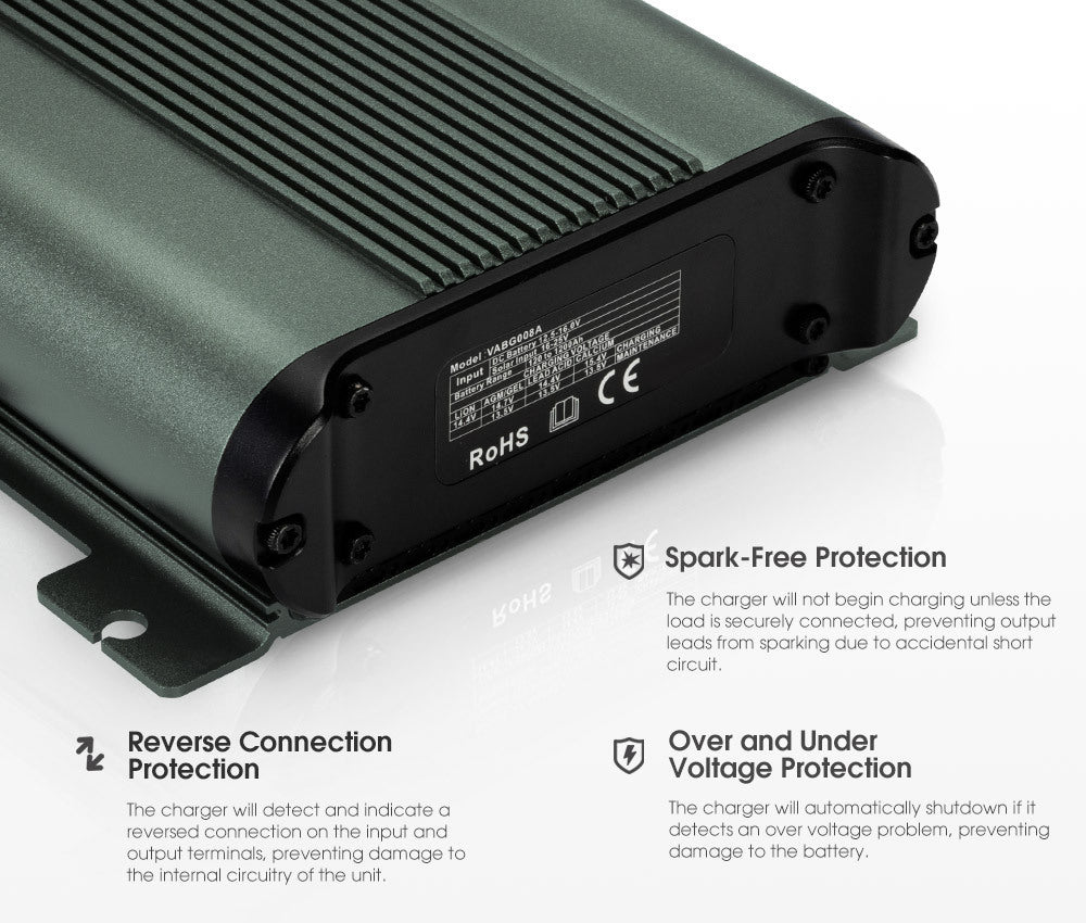 Advanced Charging Algorithm: Our smart 3-stage charging process optimally charges your batteries delivering them to their peak levels for extended use.