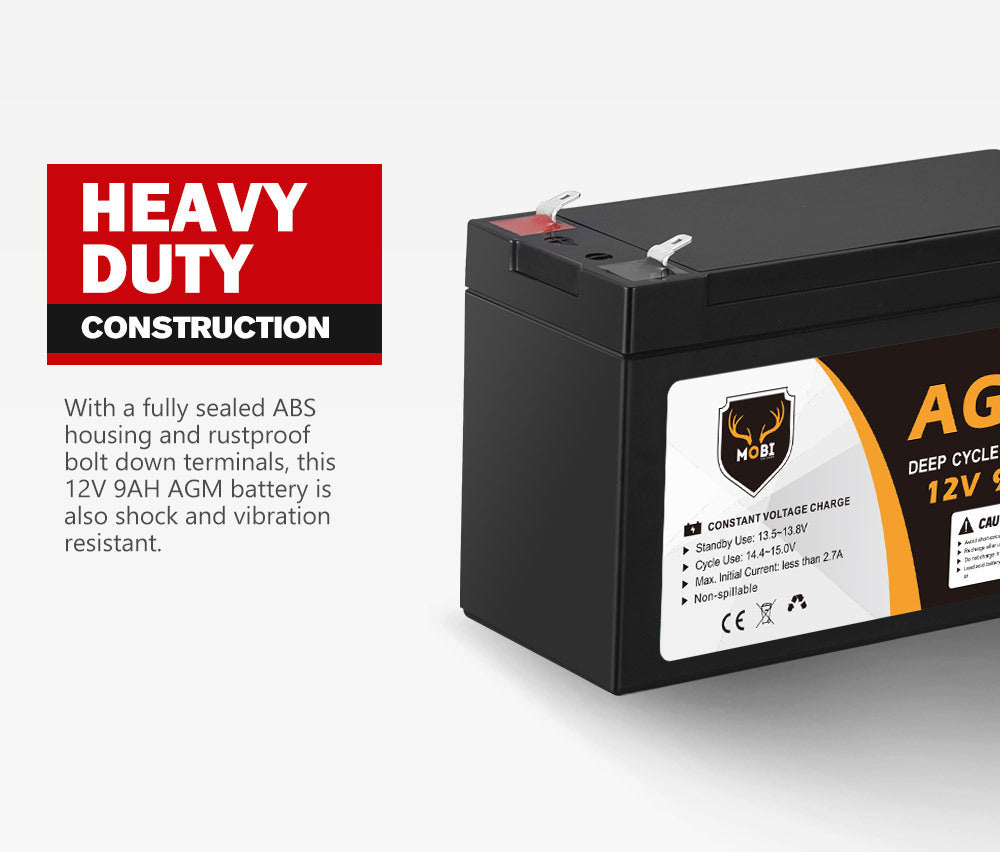 Maintenance-Free: Fully Sealed for protection our MOBI 12V 9Ah AGM battery is leak-proof spill-proof requiring no refueling with water or electrolyte.