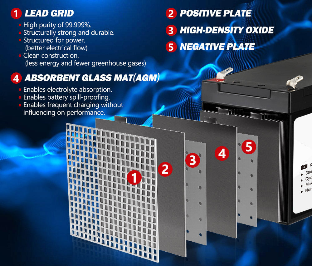 Vibration Resistance: The dense structure of the fiberglass mats gives our AGM battery excellent vibration and shock resistance ensuring consistent performance.