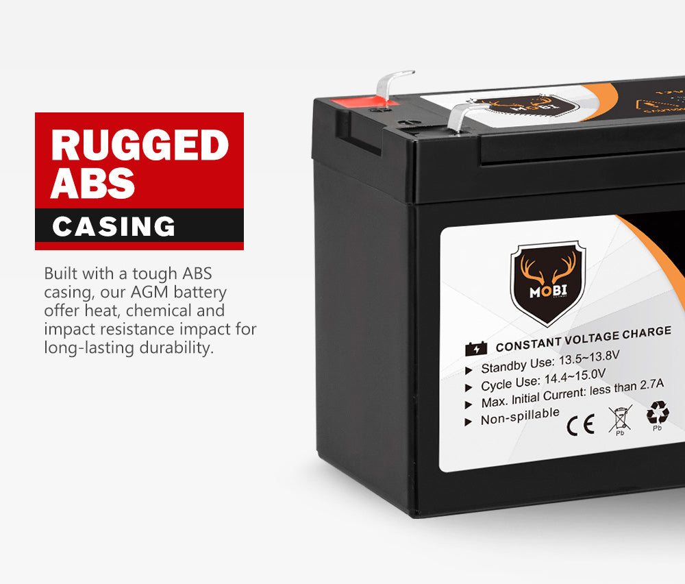 Rugged ABS Casing: Built with a tough ABS casing our AGM battery offer heat chemical and impact resistance impact for long-lasting durability.