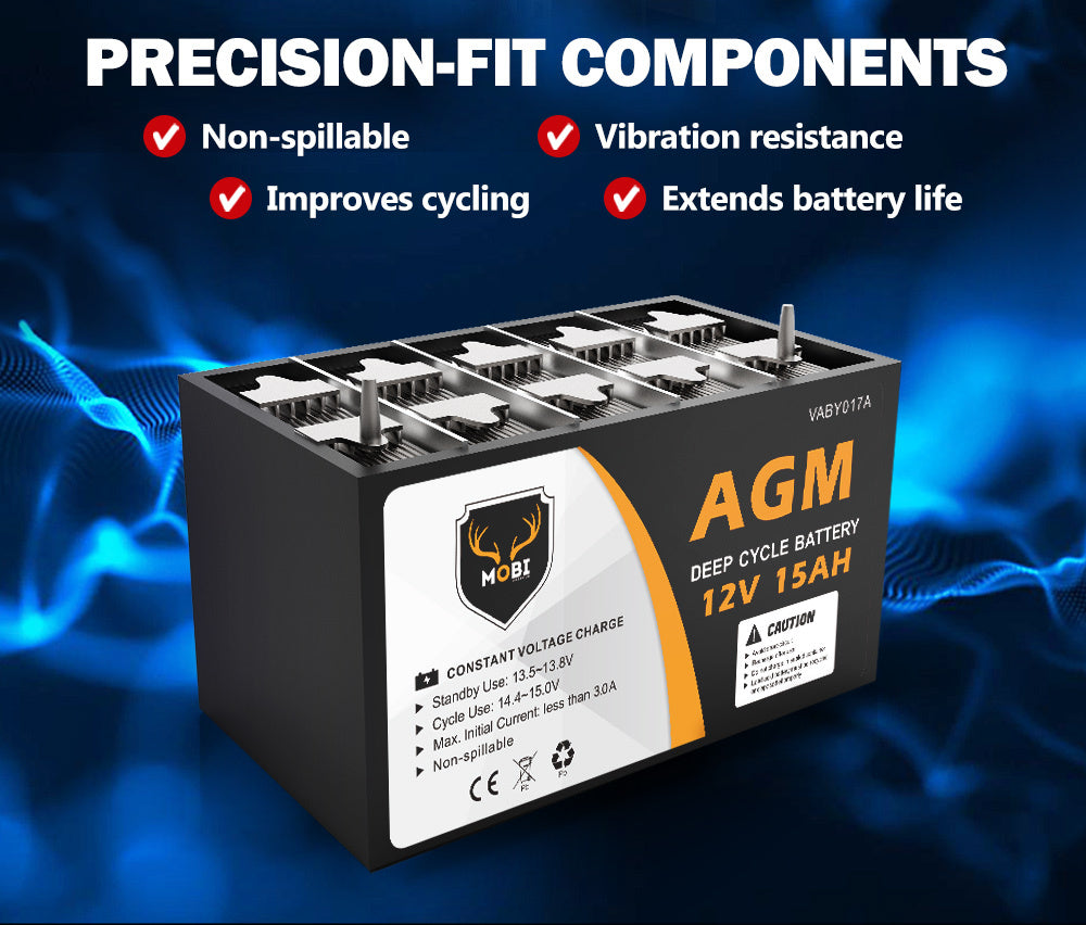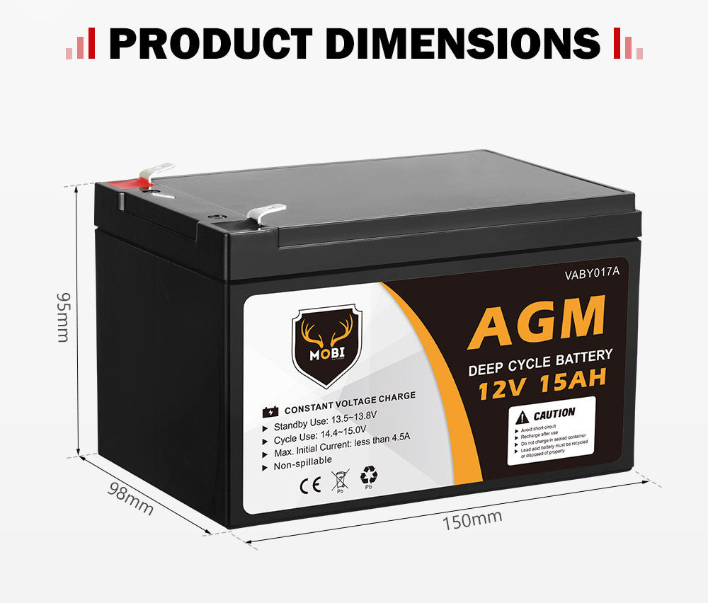 Maintenance-Free: Fully Sealed for protection our MOBI 12V 15Ah AGM battery is leak-proof spill-proof requiring no refueling with water or electrolyte.