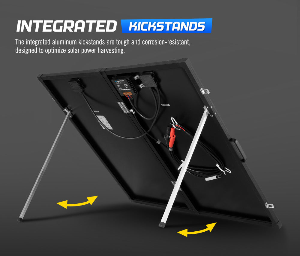Integrated Kickstands: The integrated aluminum kickstands are tough and corrosion-resistant designed to optimize solar power harvesting.