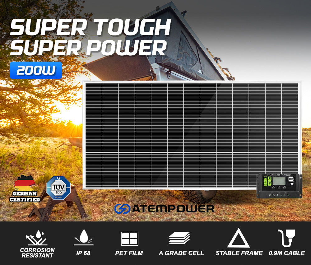 1 x ATEM POWER 200W Monocrystalline Solar Panel
