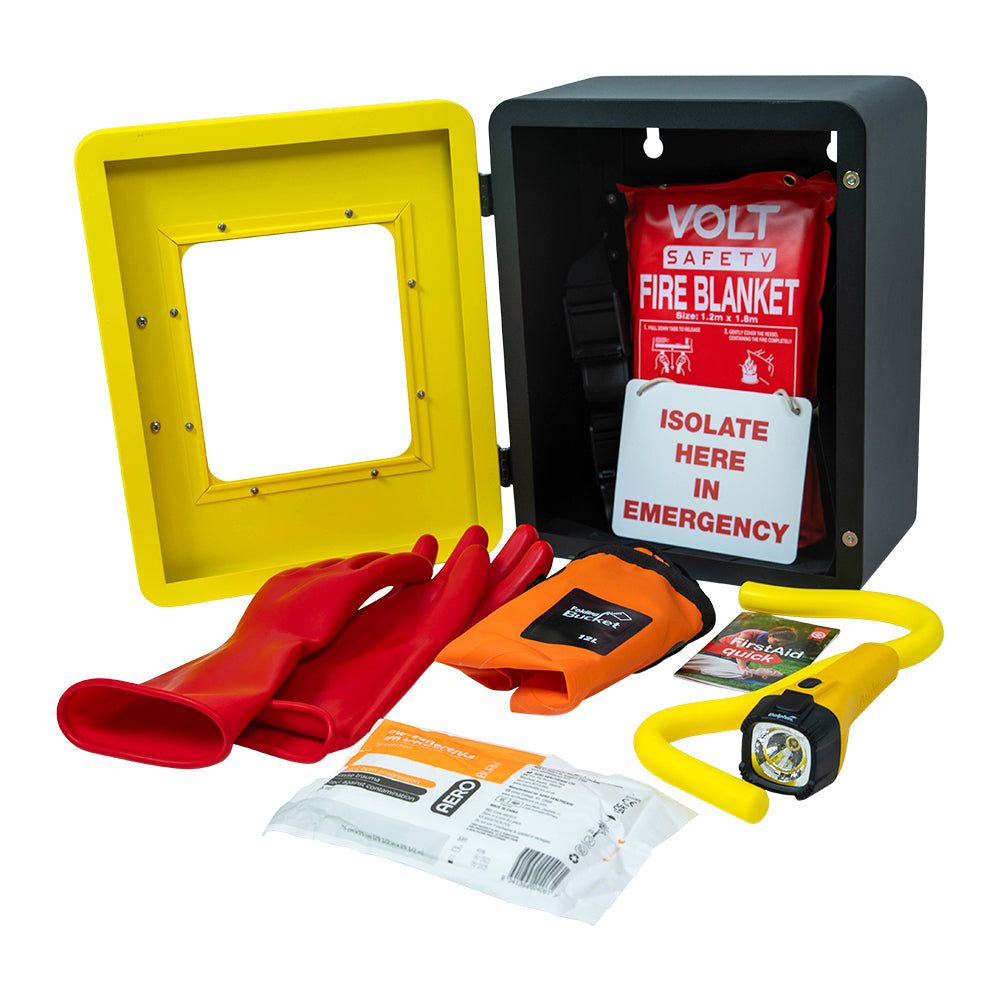 Low Voltage Switchboard Wall Mounted Rescue Kit made by Volt Safety is a must-have kit for businesses that require a dedicated rescue kit on-site.