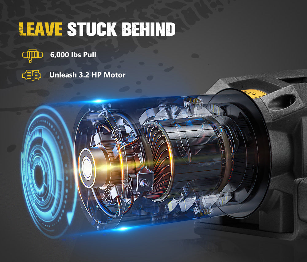 Unleash Unstoppable Power: Tackle any challenge with our 3.2 HP electric winch. Effortlessly recover your ATV/UTV with a remarkable 6 000-pound pull capacity.