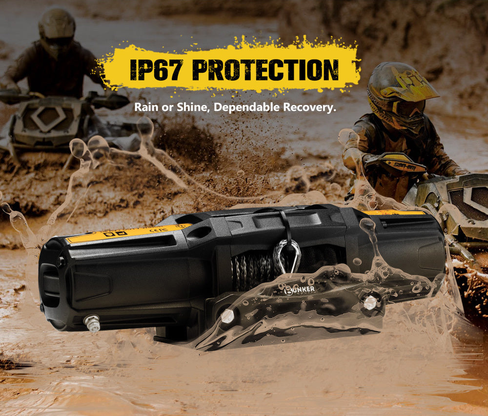 Waterproof Construction: Our winch for UTV boasts an IP67 waterproof rating. Count on it for dependable recovery ensuring your safe journey back home.