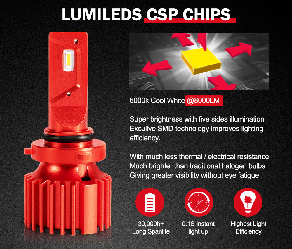 Superior Luminosity:With CREE chips this LED headlight is able to emit an incredible 8 000 lumens of 6 000K pure white brightness.