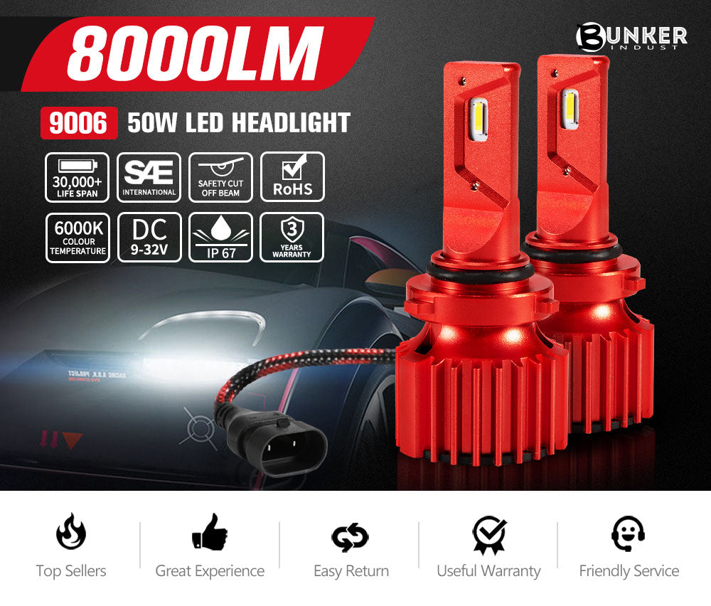 A decent headlight matters a lot especially when you are driving at night and now consistent and bright driving light is secured when the Bunker Indust LED headlight in installed for your vehicle. This LED light is able to emit 8 000 lumens of 6 000K pure white brightness to illuminate extremely dark spaces. Elaborate optical design delivers accurate beams without any dark spots or foggy light making driving at night safer and more comfortable. Manufactured to survive the toughest conditions this light is moisture dust and waterproof with IP-67 rating and highly resistant to shock and vibration. To enhance heat dissipation the turbo fans are engineered to spin silently at an astonishing 12 000 RPM. And that is further enhanced by cold-pressed aluminium heat sinks and 1.8mm slim PCB board. And this light is ETC tested to avoid circuit interference or electromagnetic radiation. A lifespan of over 30 000 hours makes it drivers’ first choice.